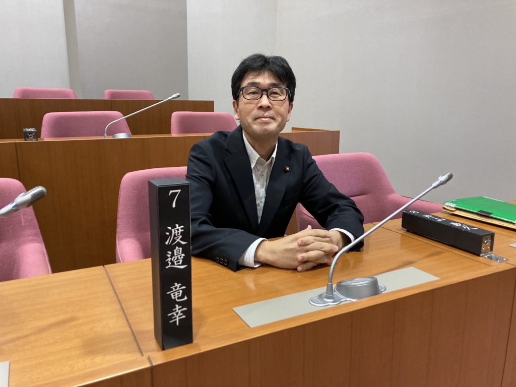 質問の途中に落雷による影響で、議場が停電になり一時騒然となりました。