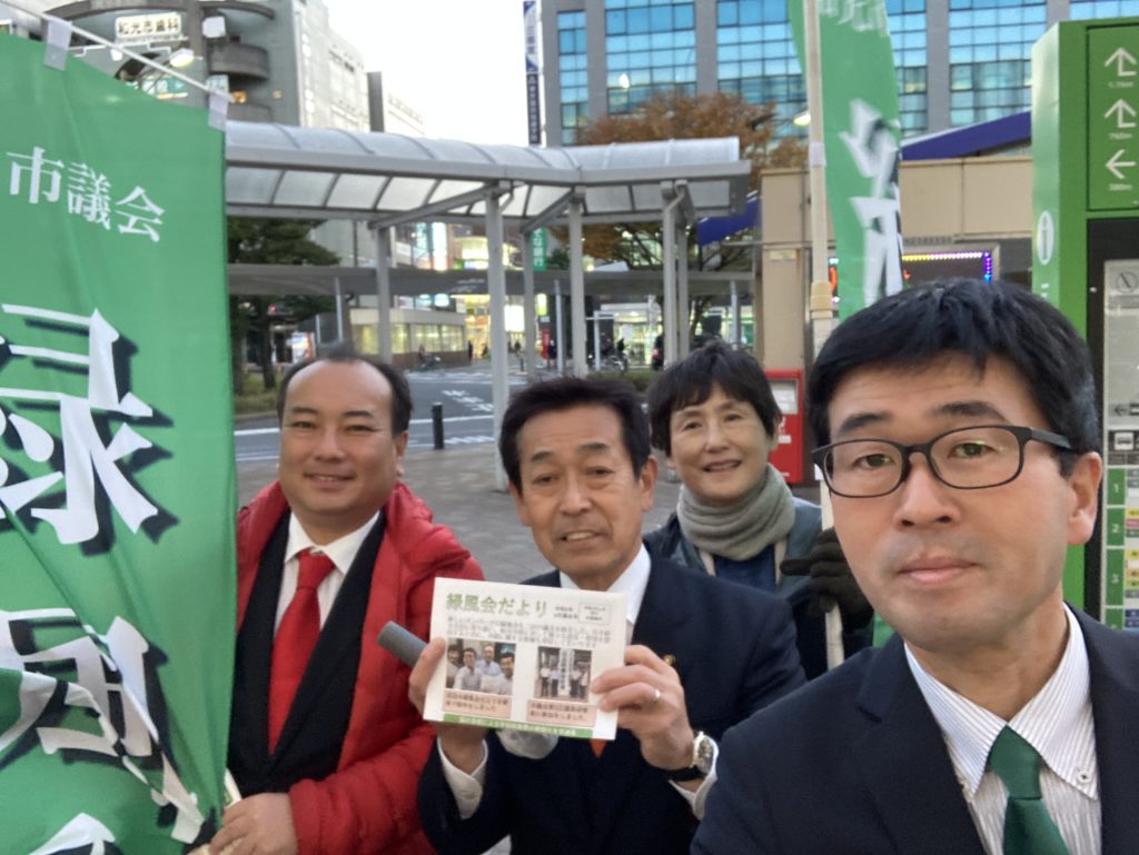緑風会として議会レポートを配布 自動運転バス二期工事説明会に参加 丸山台外環道蓋掛け部の活用実証実験に参加