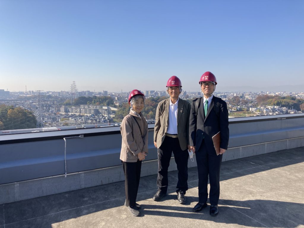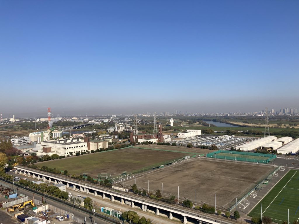 ジャパンエレベーターサービス様の施設を見学 屋上にて 屋上から見る和光スポーツアイランド