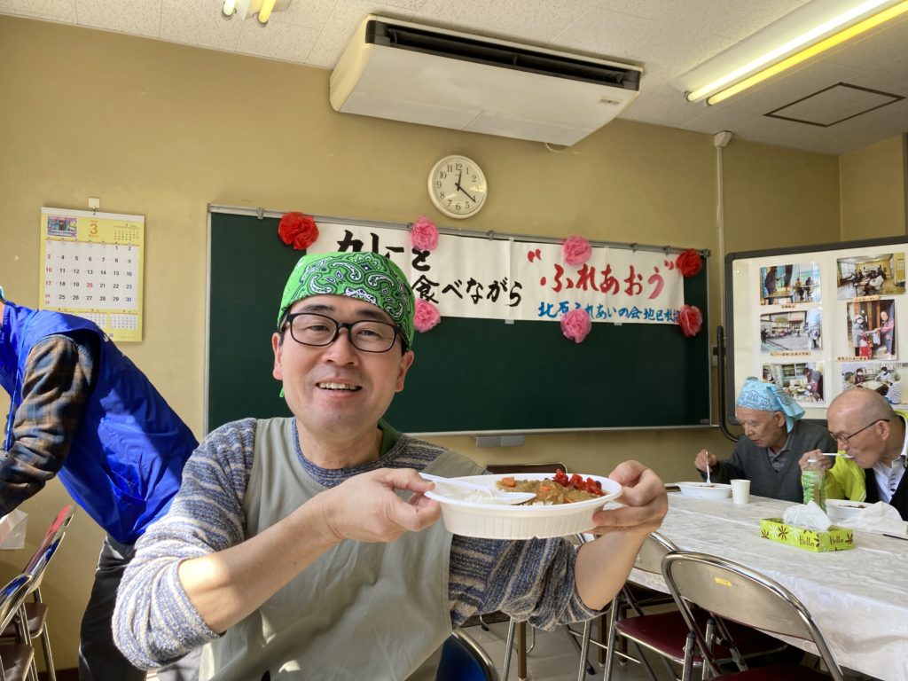 北原ふれあいの会 地区社協の催しでカレーをみんなで食べました。自分はポップコーンを作りました