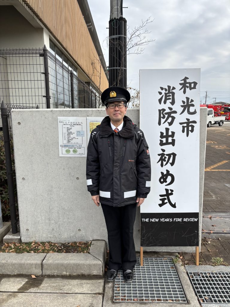 令和7年和光市消防出初式に参加し、片山議員と評員を務めさせていただきました