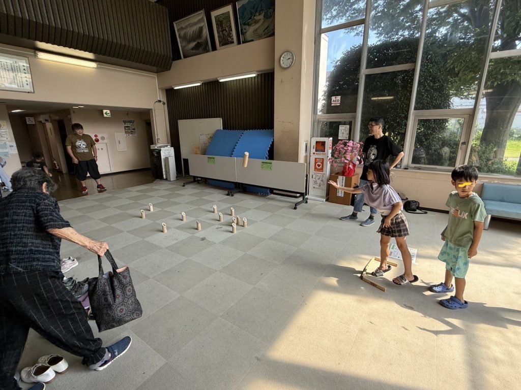南公民館でおとなこども食堂があり、モルック体験の手伝いをしました